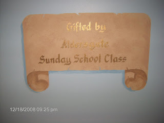 close-up of calligraphy/scroll work First United Methodist Church